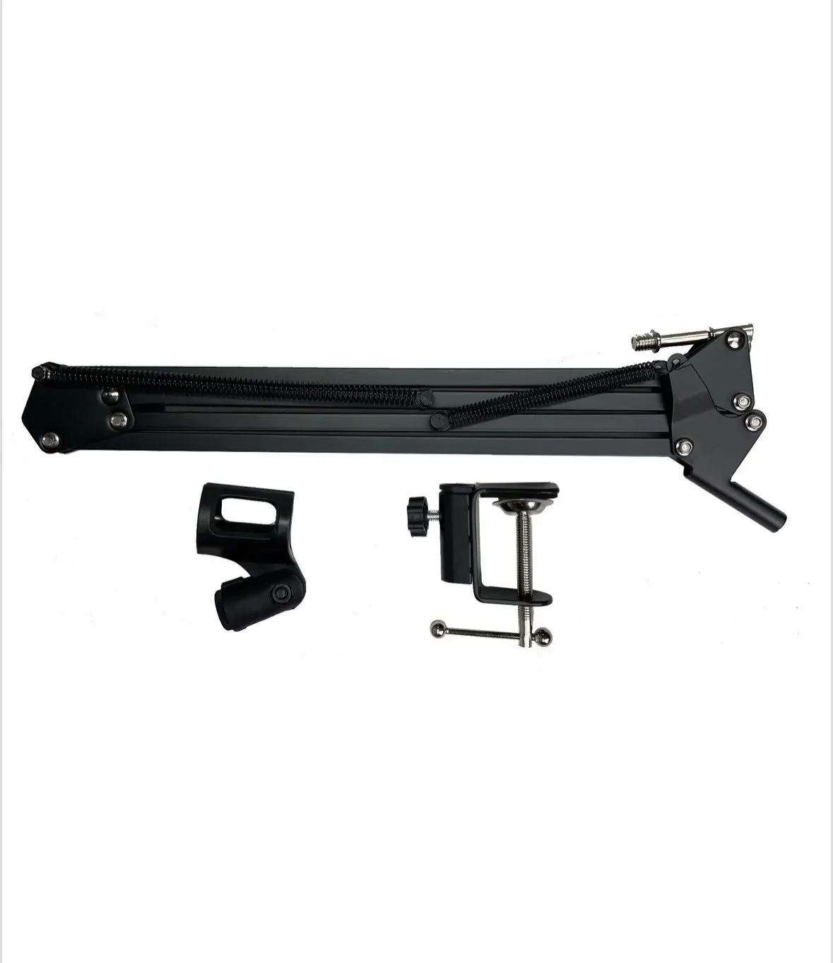 - Diseño resistente: Brazo ajustable de tijera con soporte de escritorio, ideal para mantener el micrófono en su lugar durante grabaciones, transmisiones y podcasting.
