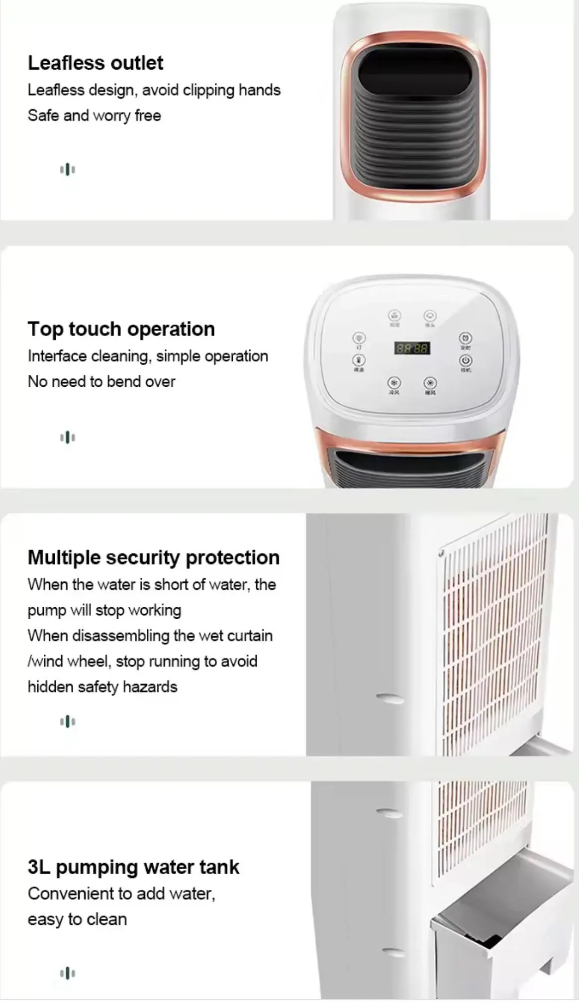 - Función de 3 modos: Este aire acondicionado portátil combina tres funciones en una: refrigeración, calefacción y deshumidificación, ofreciéndote un ambiente cómodo durante todo el año.