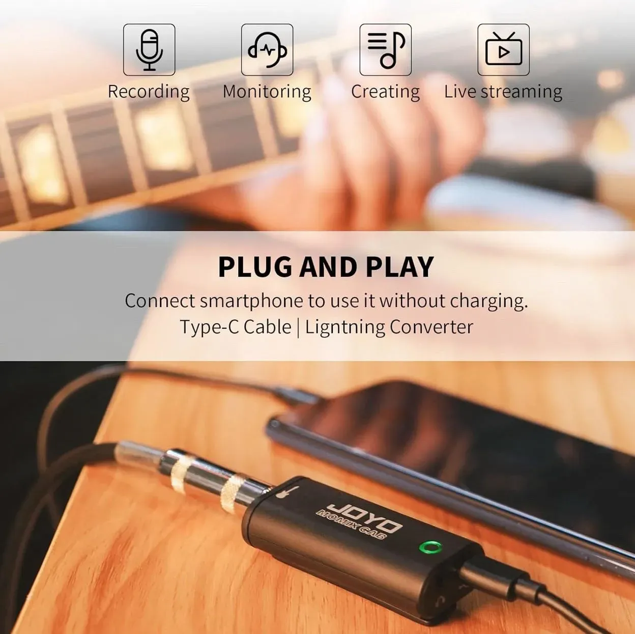 Interfaz de guitarra Plug and Play para transmisión en vivo