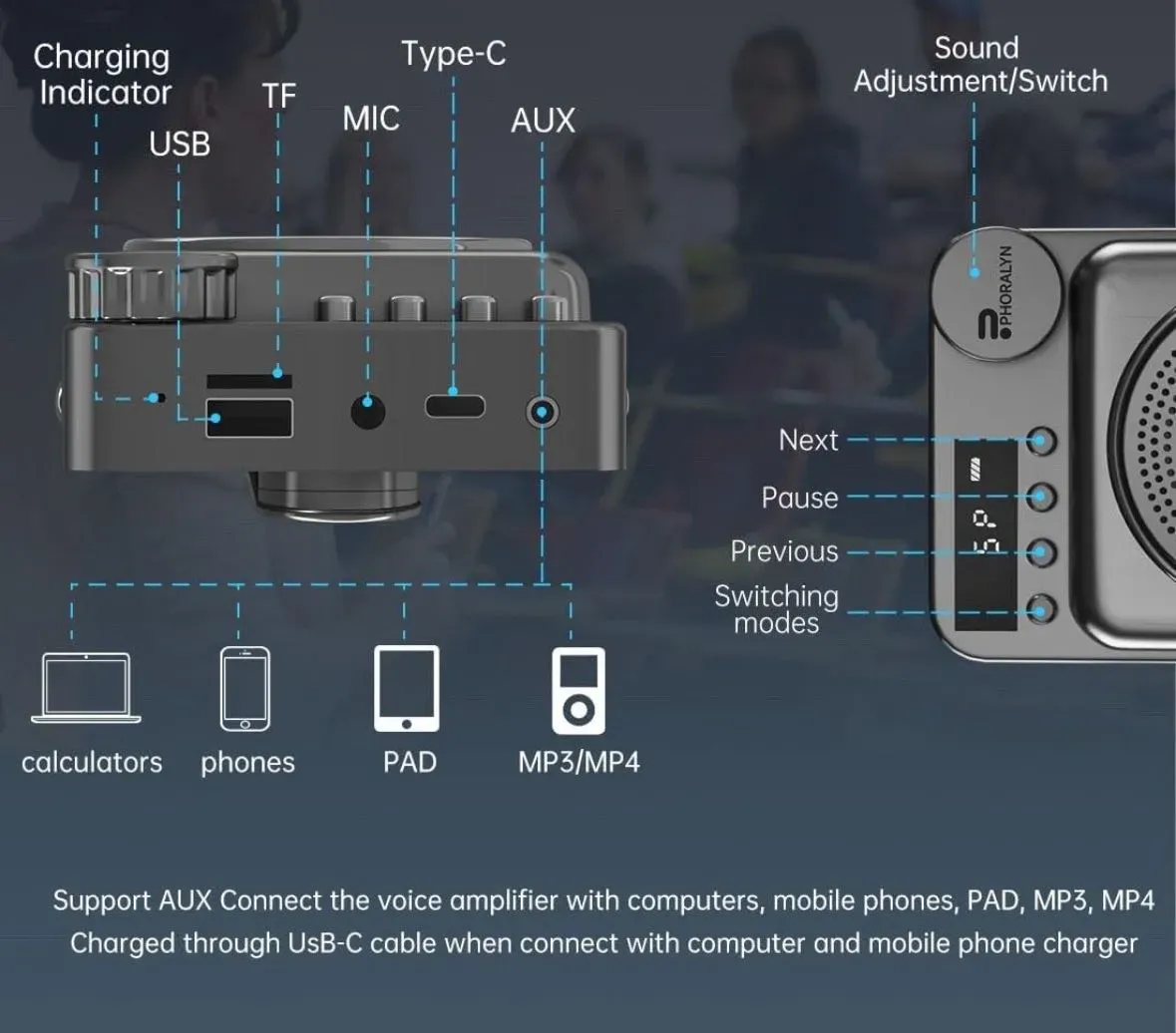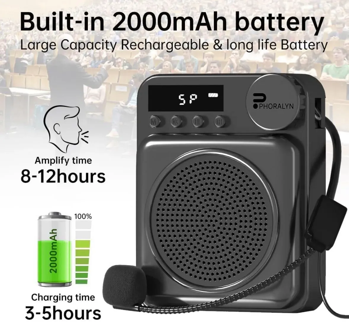 Potente amplificador de voz: es un amplificador de voz profesional con salida de 35 W de sonido potente que permite que alrededor de 120 estudiantes te escuchen. Sin ruido y sin distorsión. Garantiza un sonido nítido para tu estudiante o audiencia. Perfecto para amplificar tu voz y salvar tu gargant...