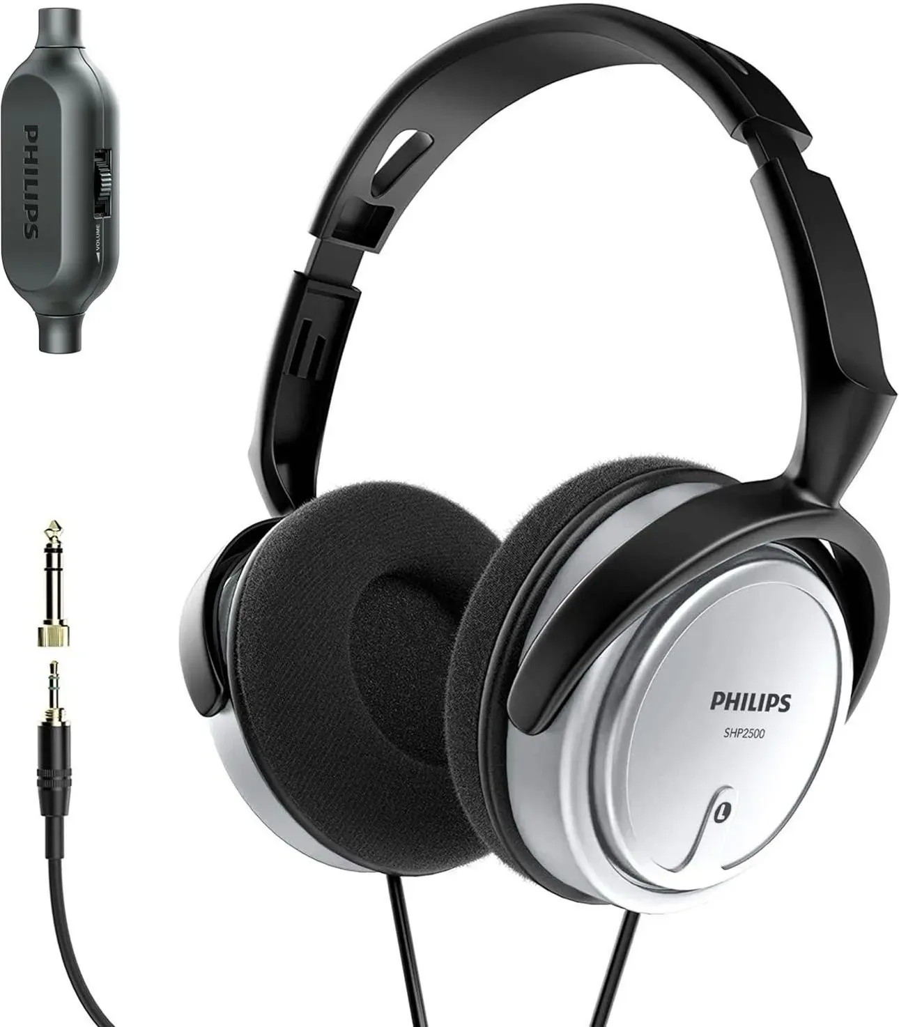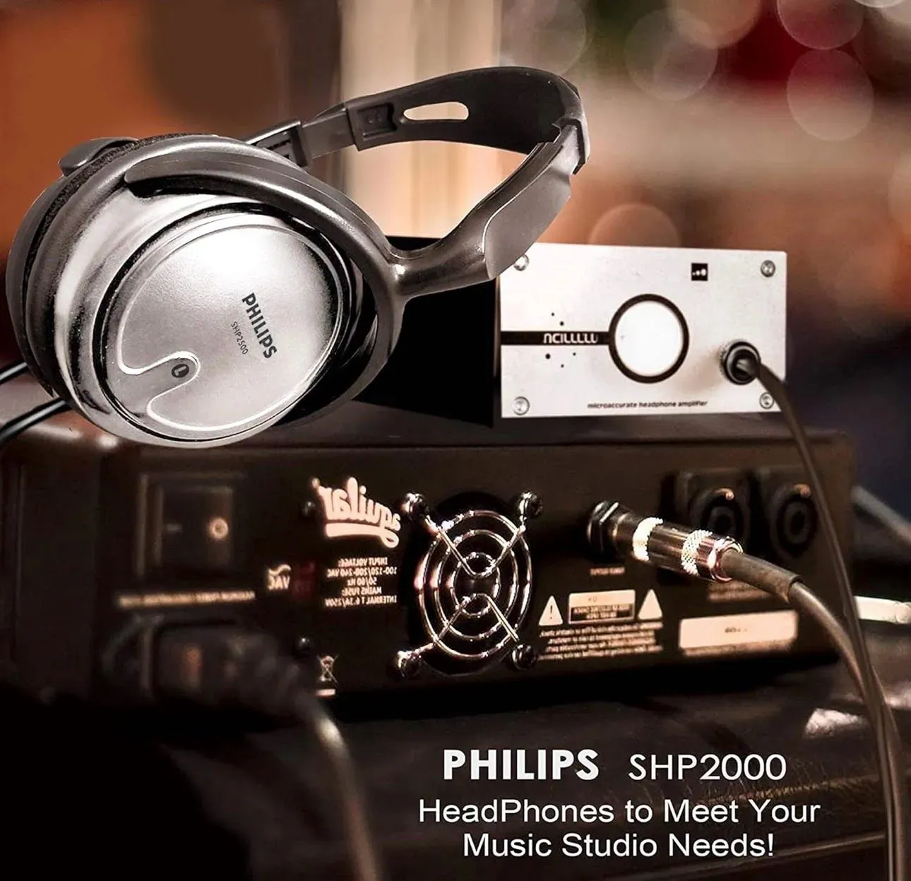 Philips Auriculares con cable para diadema estéreo para podcasts, auriculares de monitoreo de estudio y grabación para computadora, teclado y guitarra con adaptador adicional de 6.3 mm (1/4")