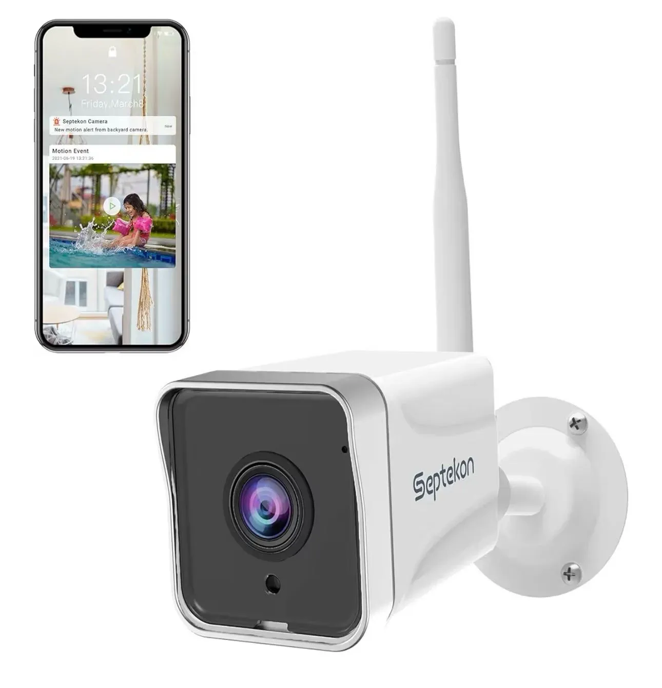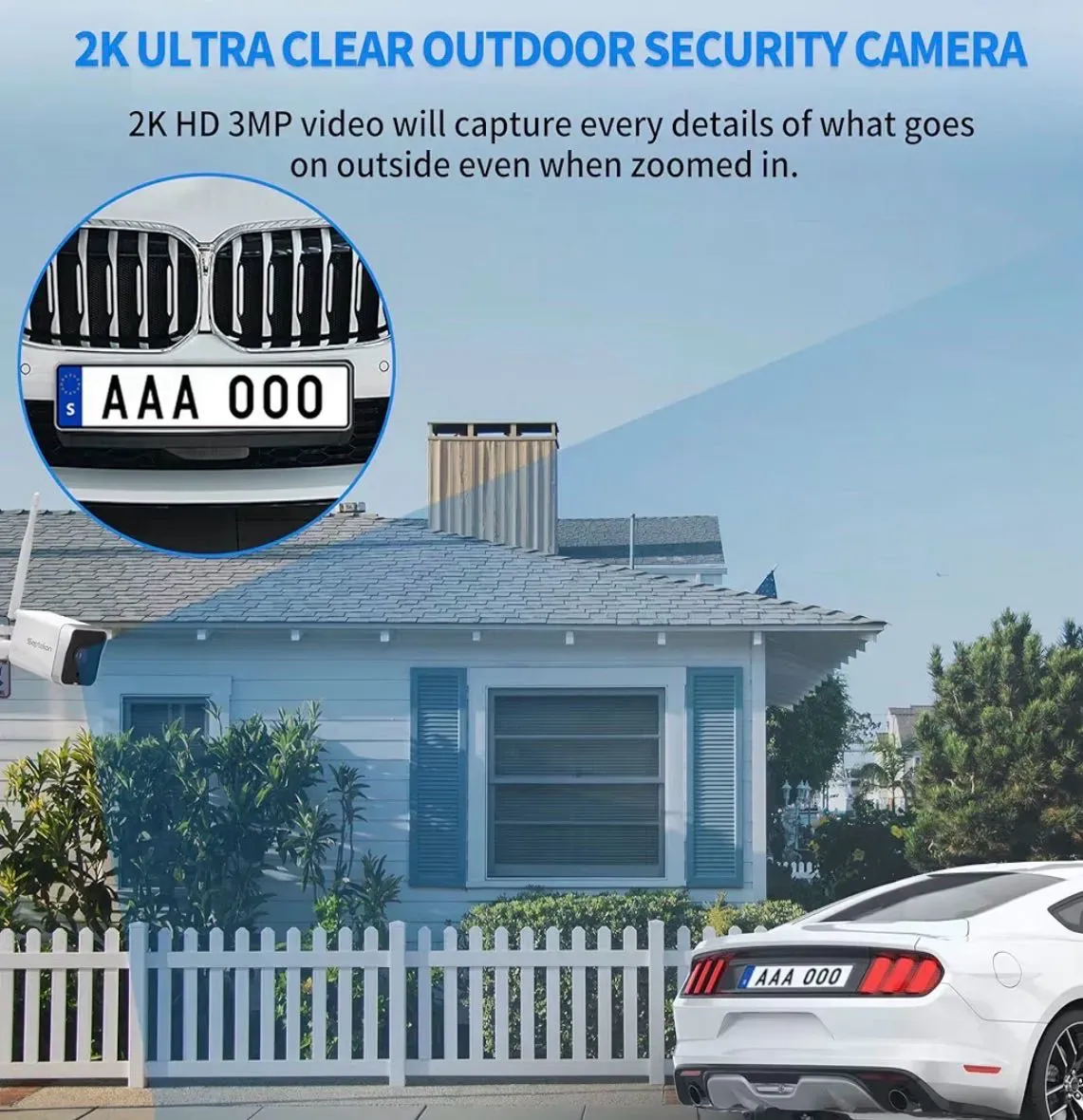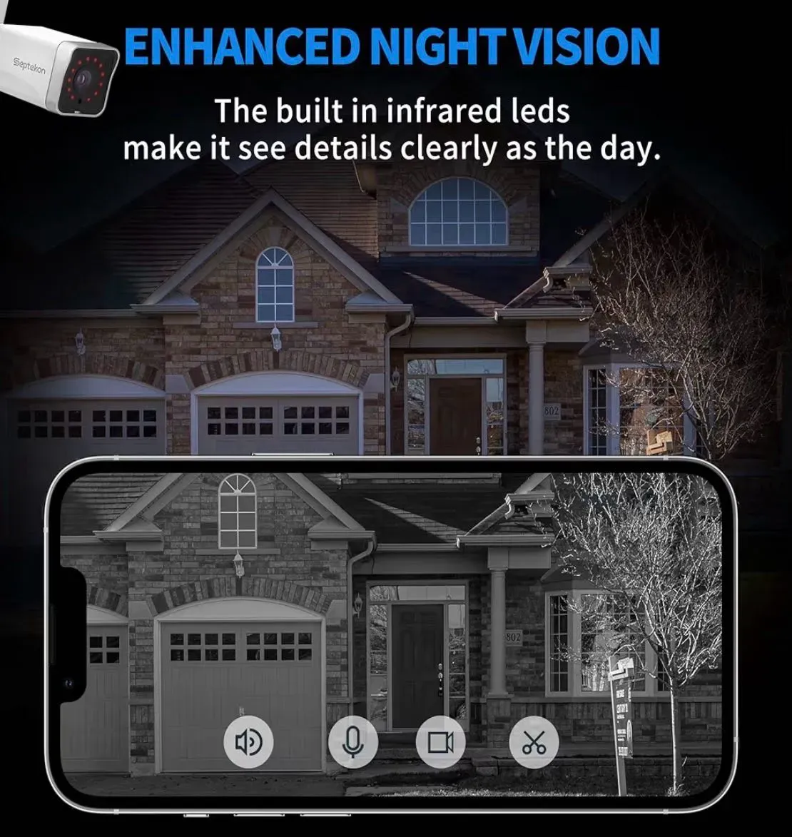 Cámara de seguridad 2K para exteriores, cámaras WiFi para seguridad del hogar exterior con seguimiento de detección de movimiento, visión nocturna, audio bidireccional, IP66 resistente a la intemperie, Wi-Fi de 2.4 GHz, compatible con Alexa