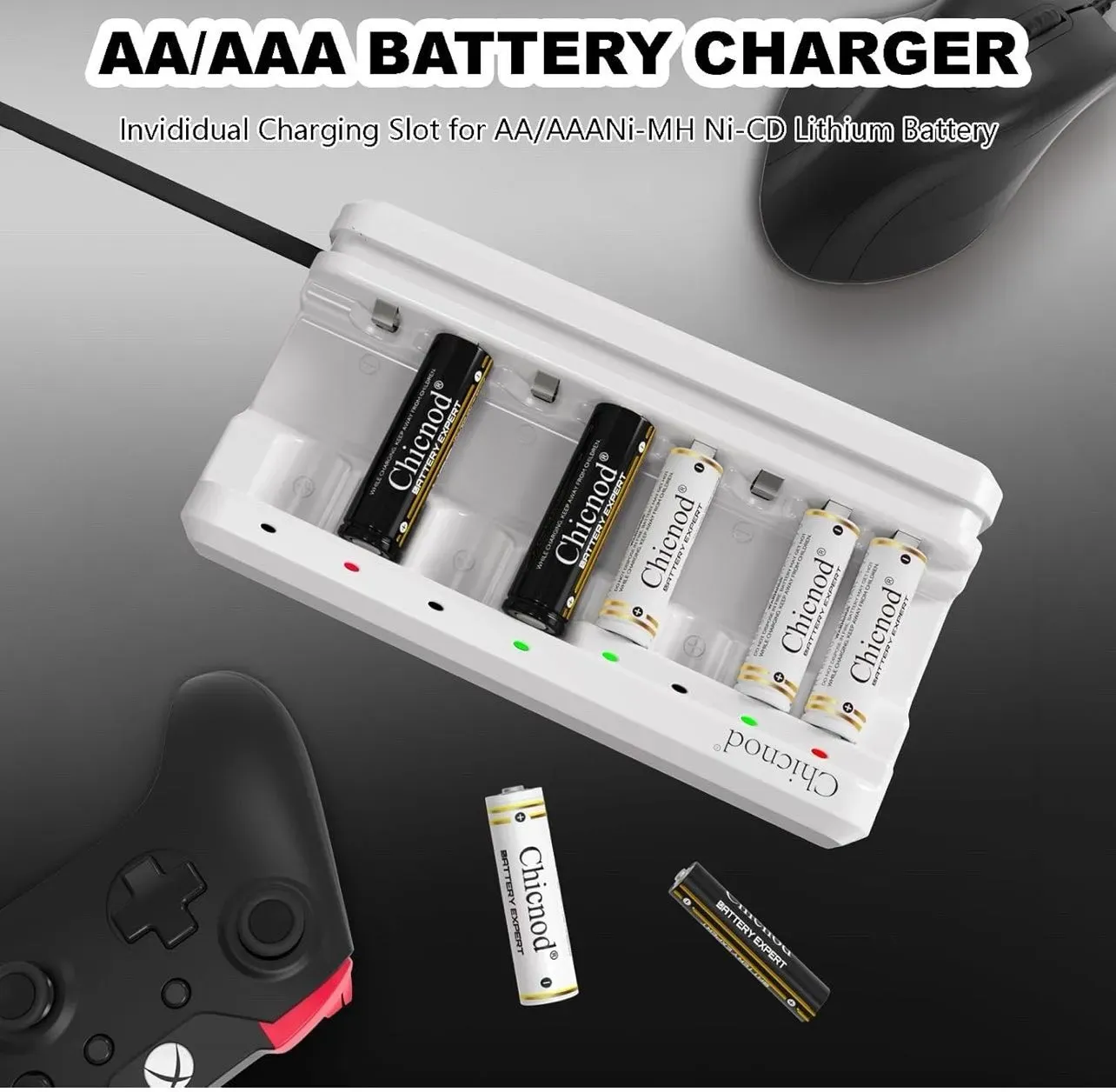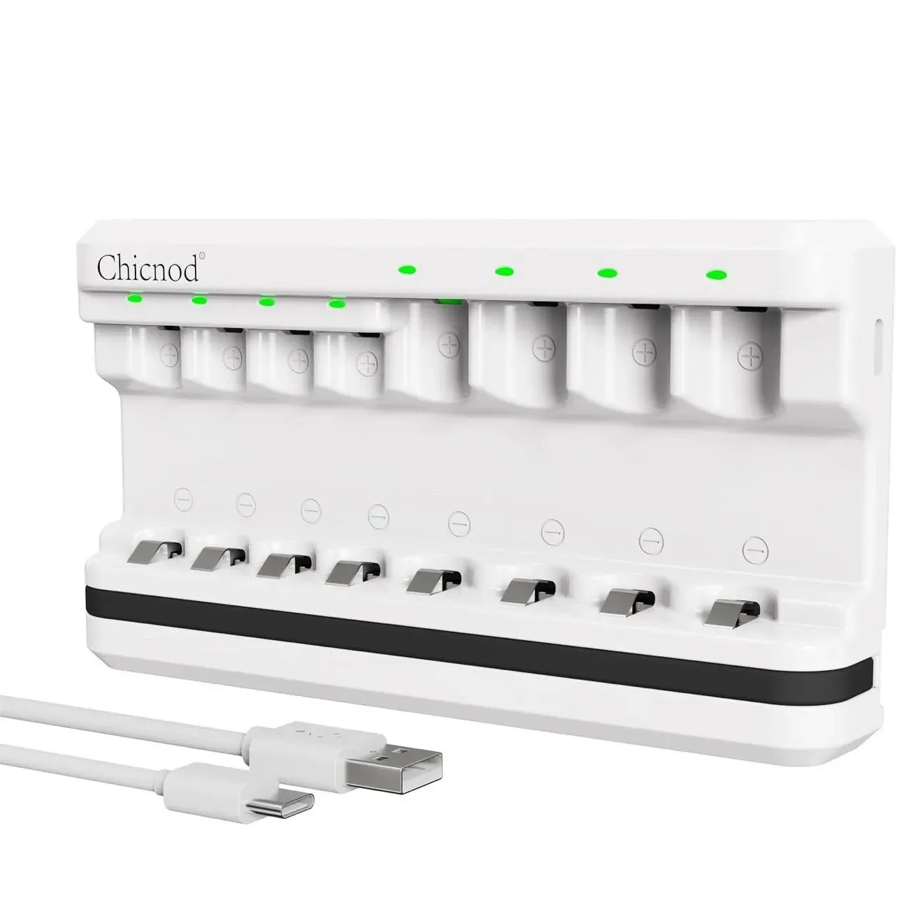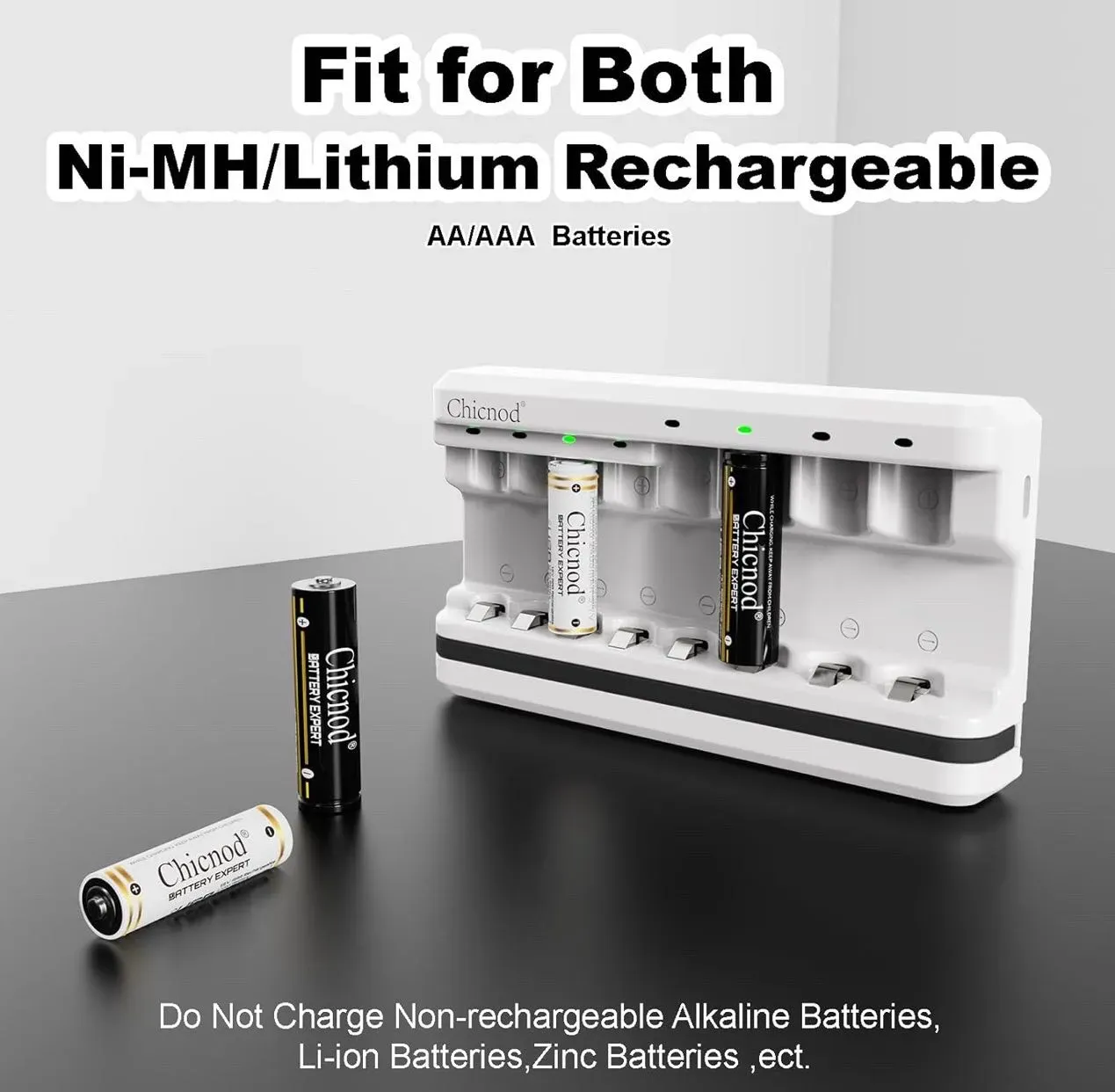 Cargador de batería recargable, cargador rápido de batería multifunción, 1.5V/1.2V 8 bahías, cargador de batería recargable AA/AAA Litio Ni-mH, ranura de batería independiente, ranura de batería