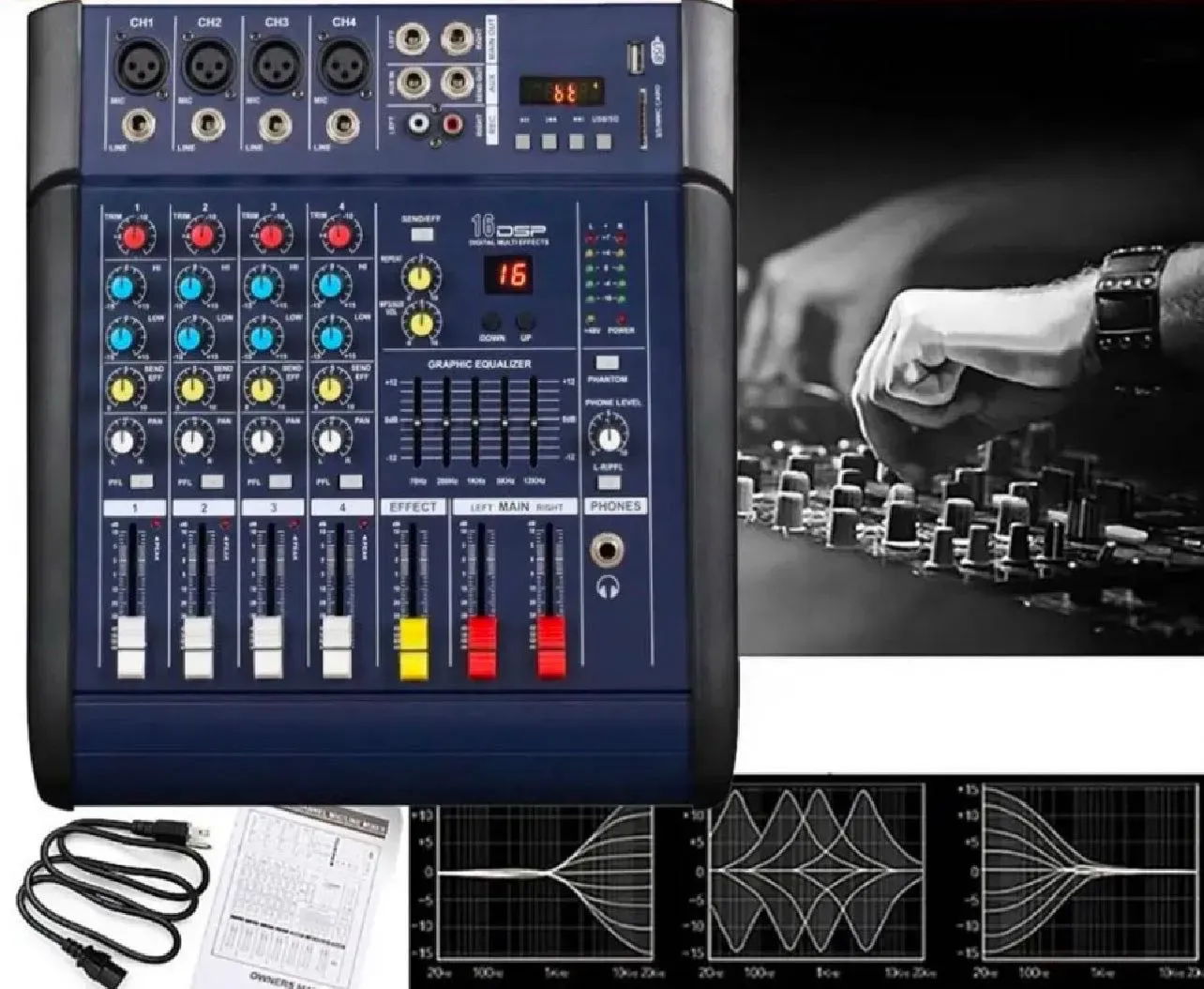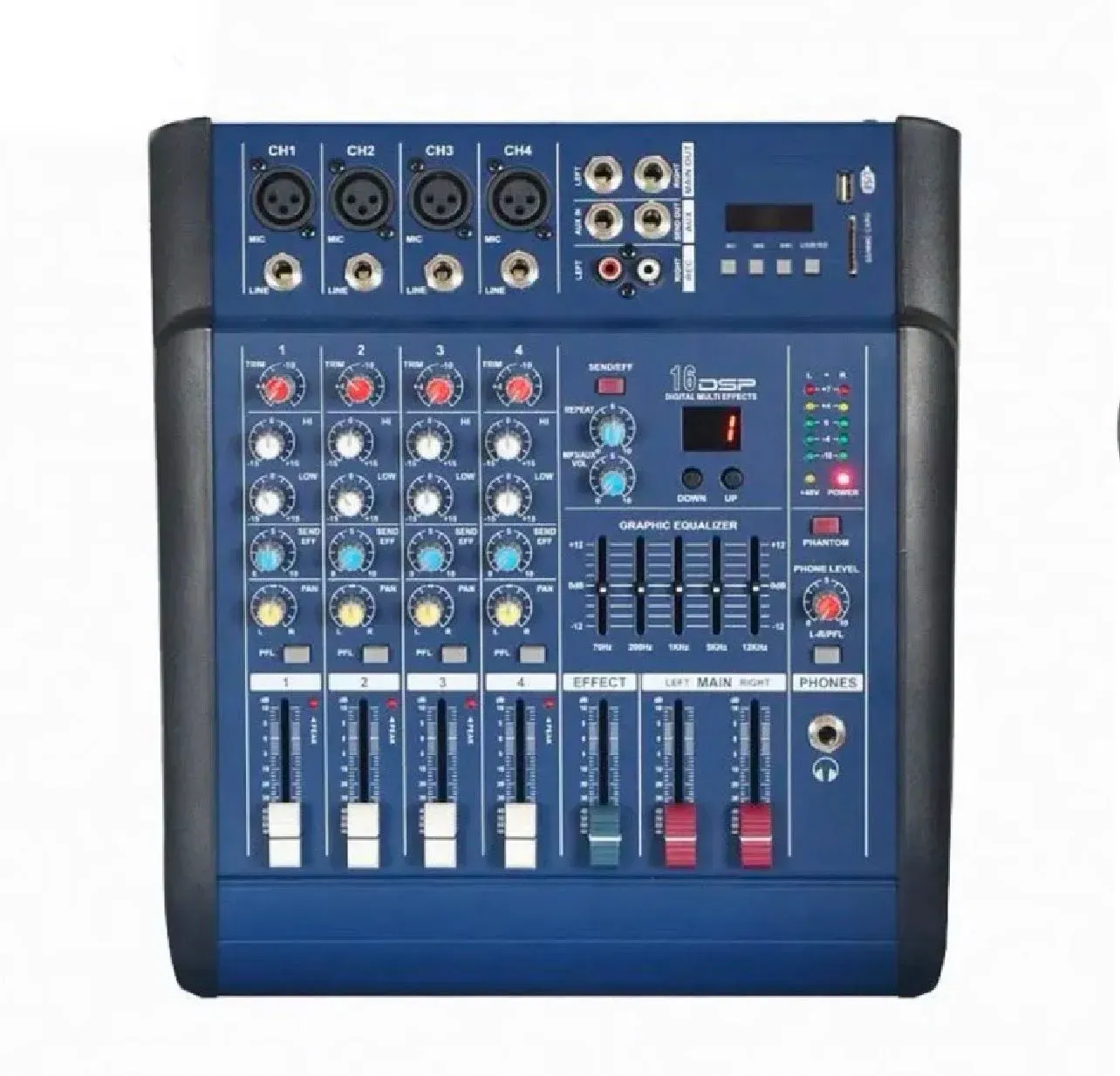Mezclador de potencia de estudio profesional 402D de 4 canales, consola de mezcla de sonido de DJ con amplificador de potencia para espectáculo de escenario de Canto de Karaoke