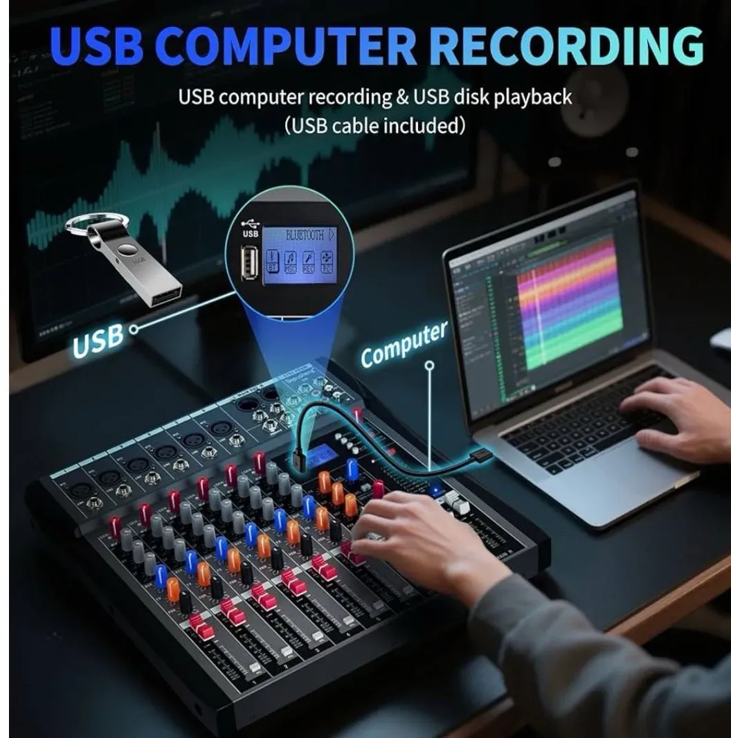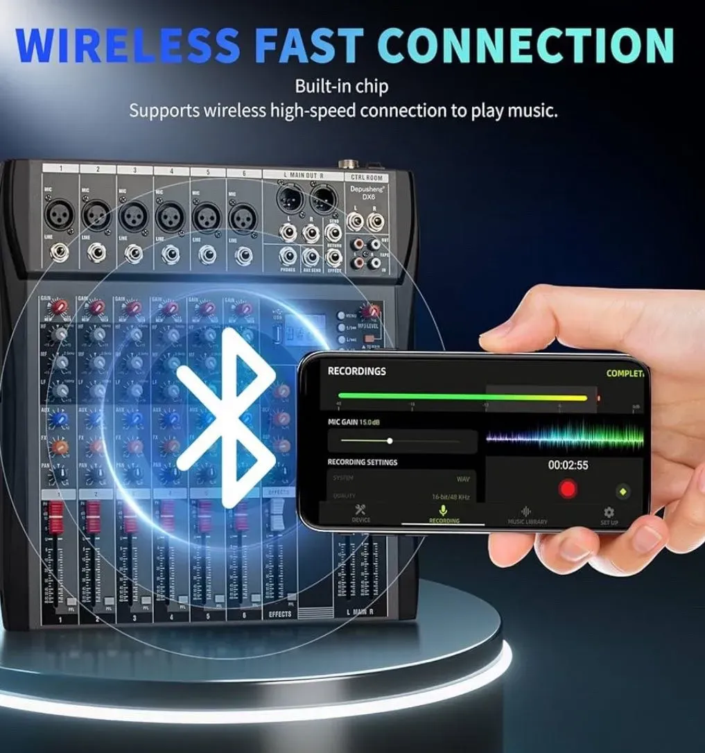 Compatibilidad con múltiples dispositivos: lector USB/flash/MP3 o dispositivo Bluetooth son muy fáciles de conectar este mezclador a mezclar y grabar; los controles integrados proporcionan una experiencia amigable para reproducir/pausar, saltar pistas y cambiar entre modos