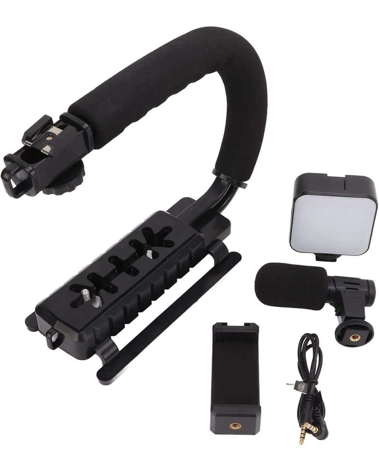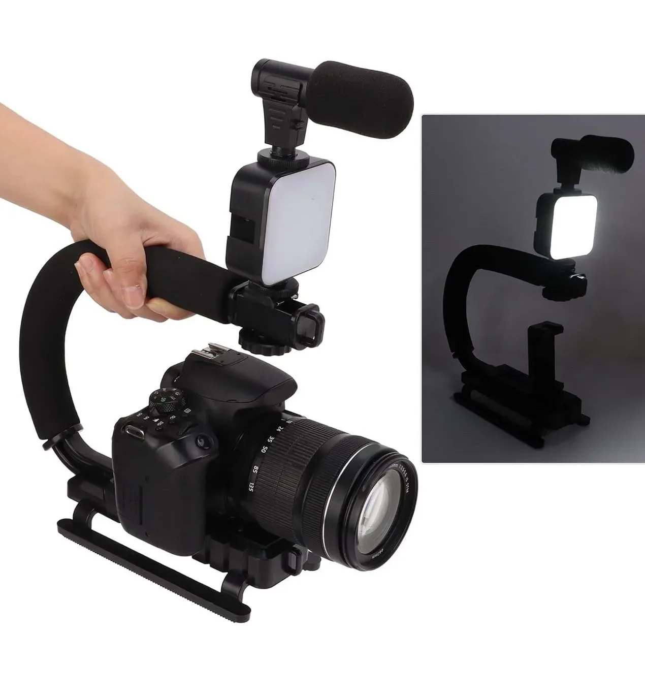 Estabilizador de video con micrófono y luz