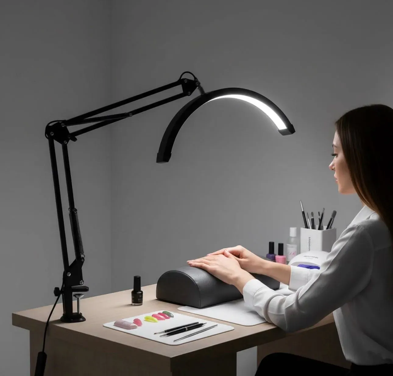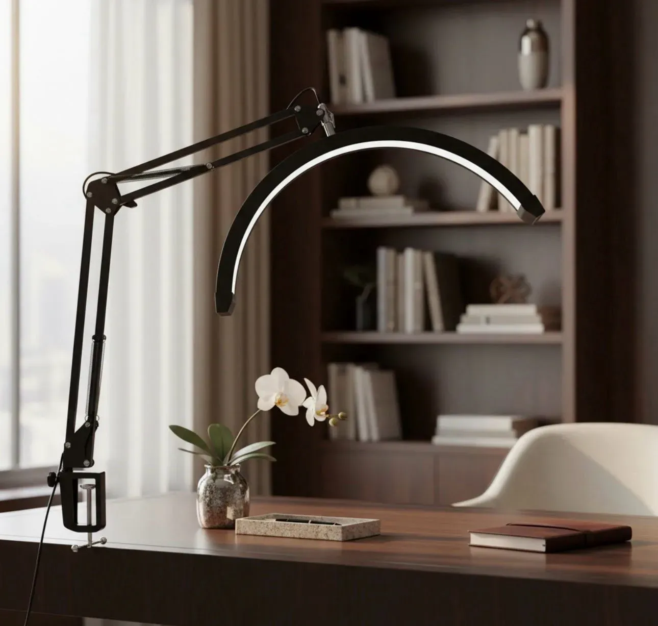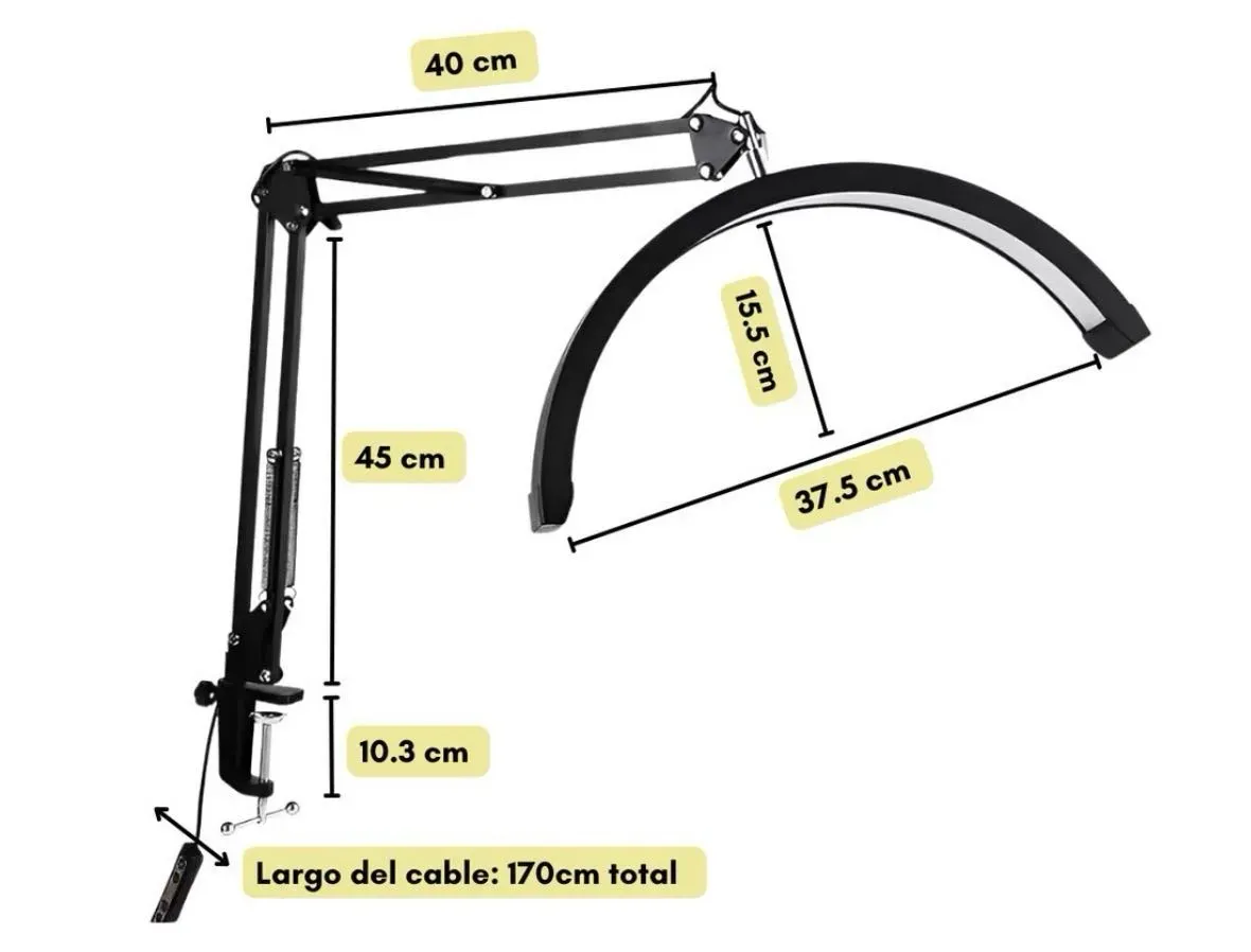 Diseño flexible y articulado: Ajustá la posición de la lámpara con facilidad gracias a su brazo flexible que se adapta a cualquier ángulo, ideal para lecturas, trabajos manuales o actividades creativas.