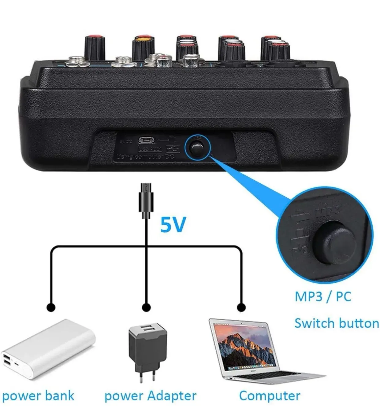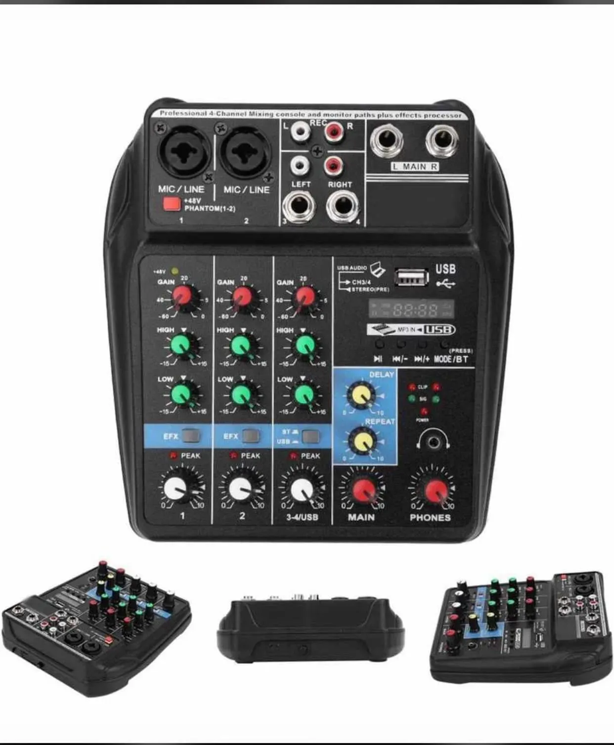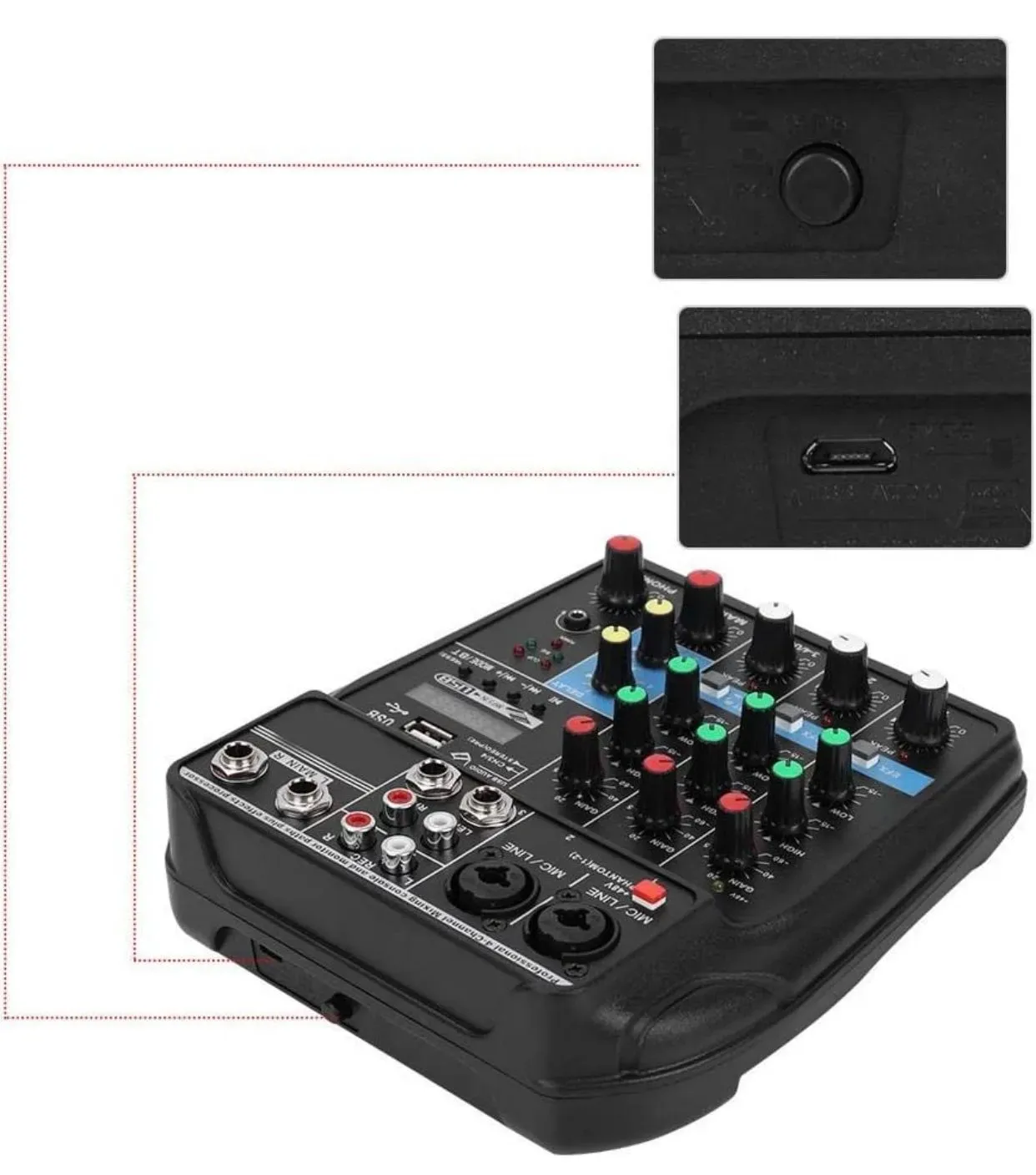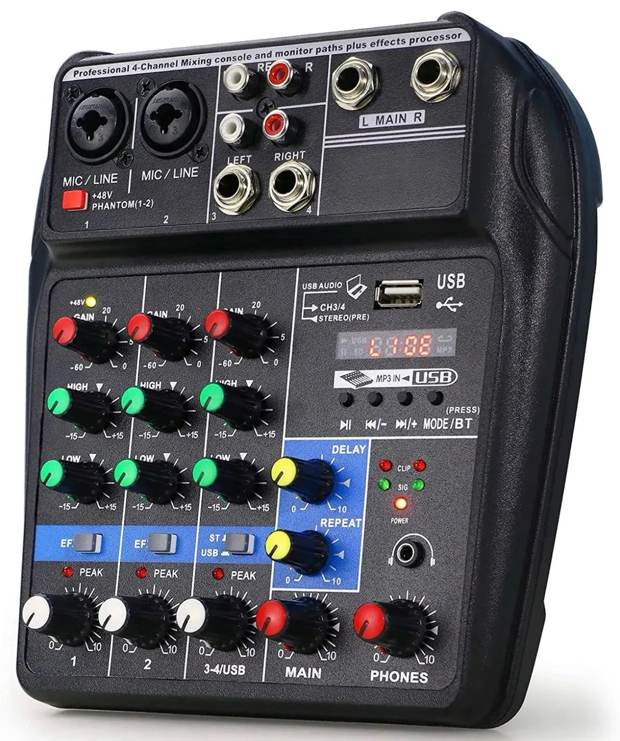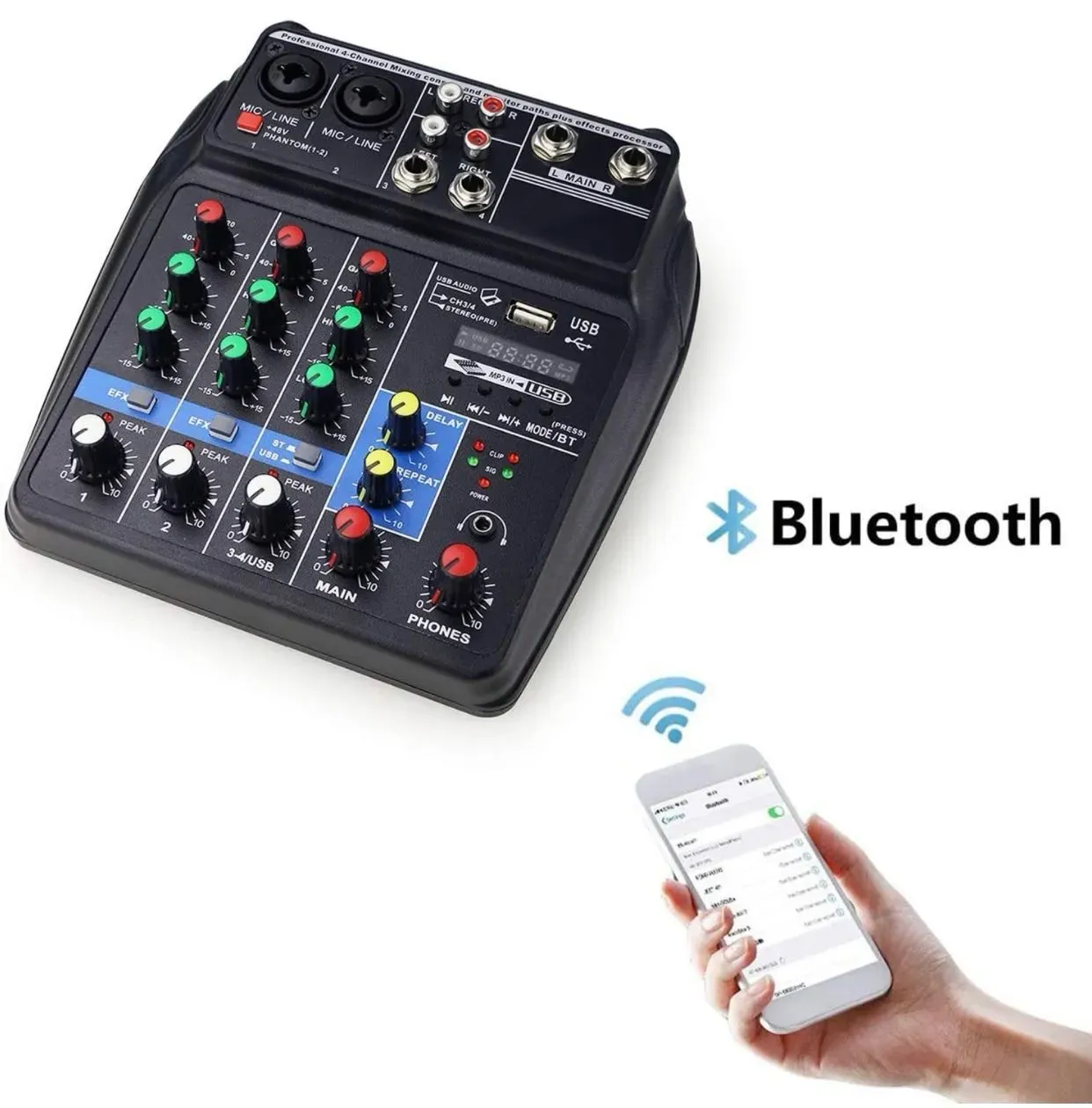 Mezclador Profesional de 4 Canales con Bluetooth y Phantom Power