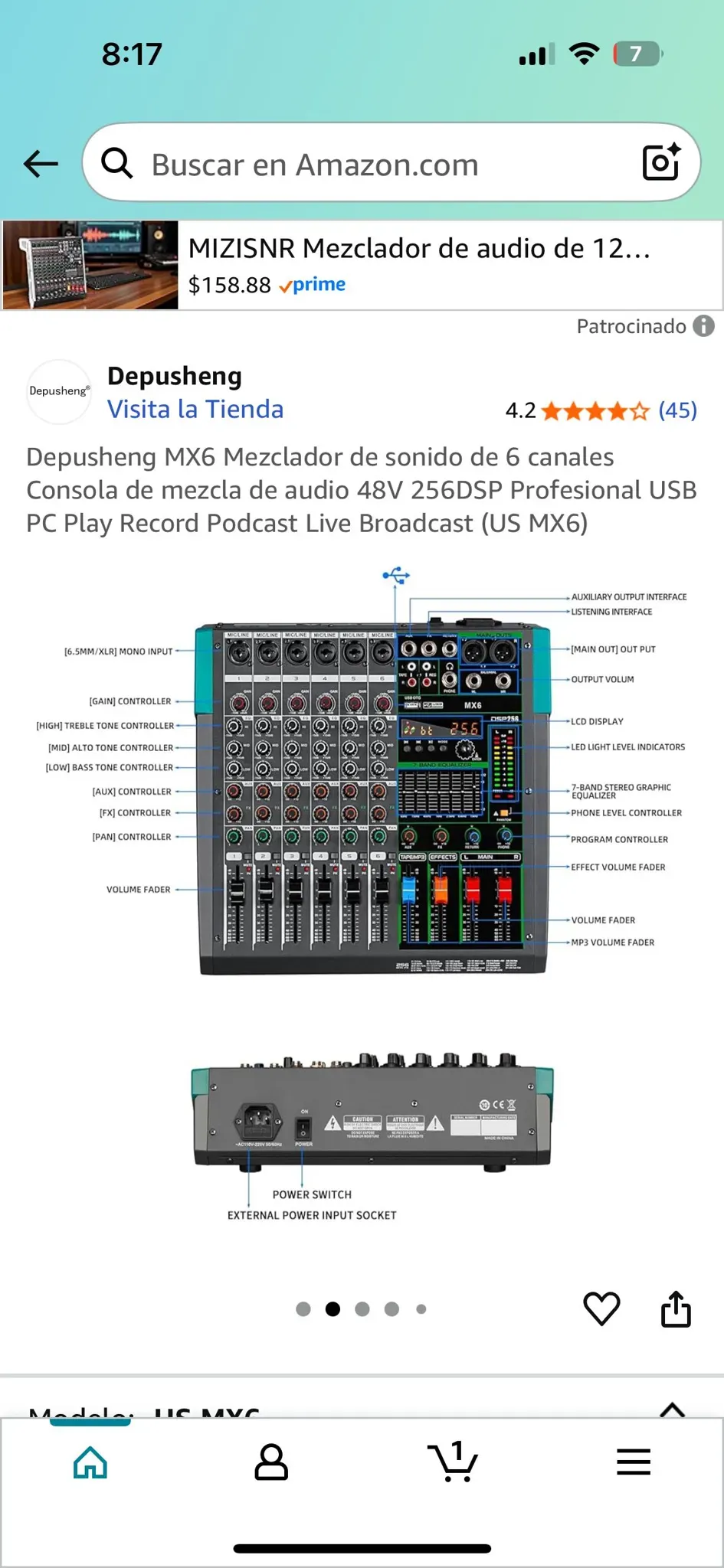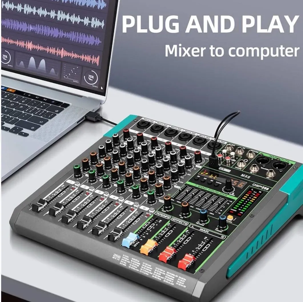 - 6 canales: Ofrece múltiples entradas para micrófonos, instrumentos y dispositivos de audio, adecuado para una variedad de configuraciones en vivo o grabaciones.