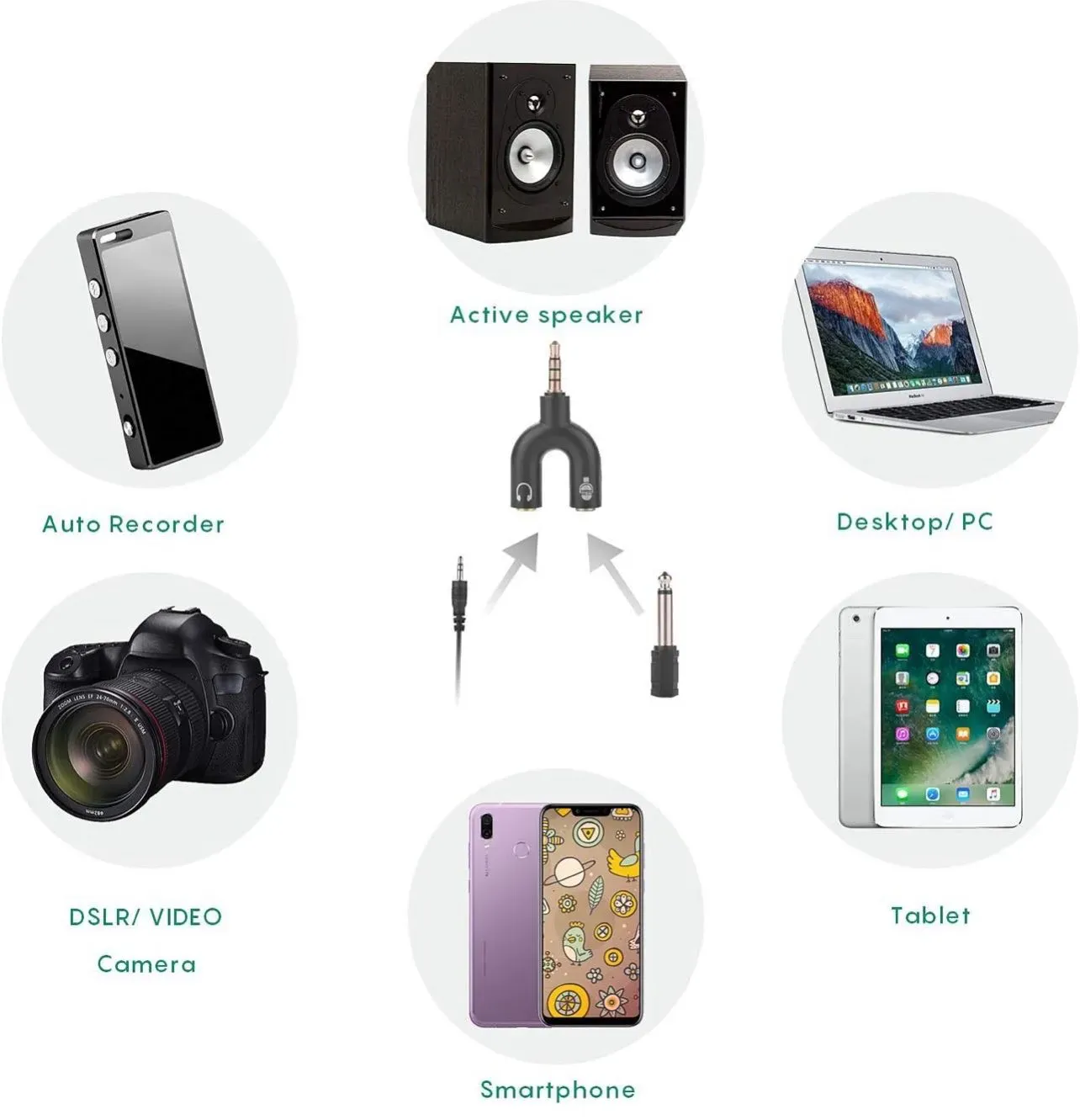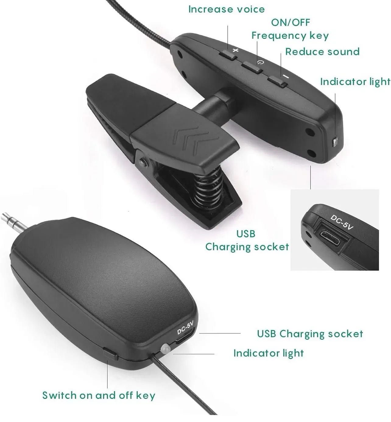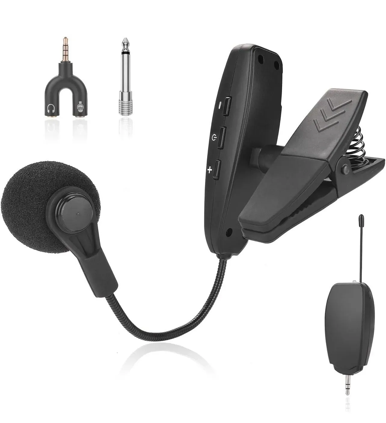 - Micrófono de condensador con clip: Diseñado para ser usado en instrumentos musicales como bocinas, trompetas, clarinetes, saxofones...