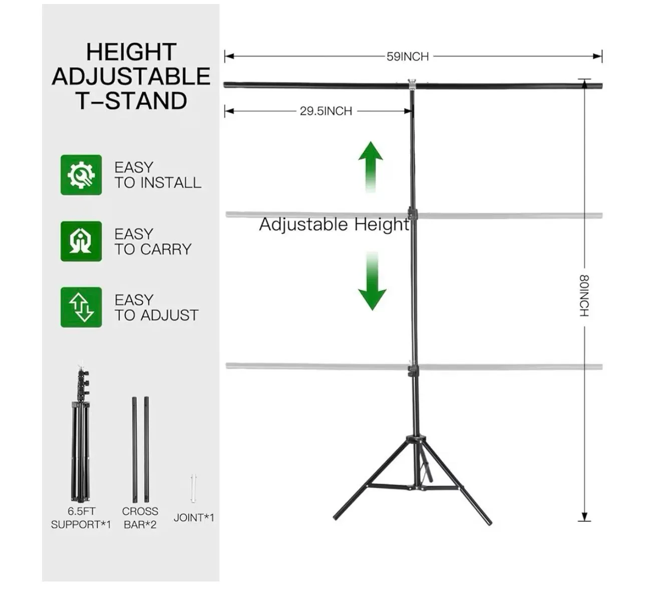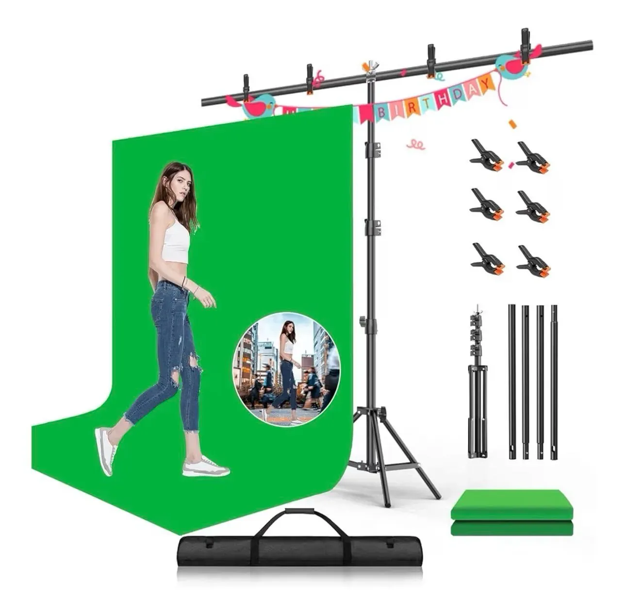 - Diseño Versátil: Permite posicionar fondos de hasta 4.6 x 5.9 pies, ideal para fiestas, sesiones de fotos, producción de video y transmisiones en vivo.