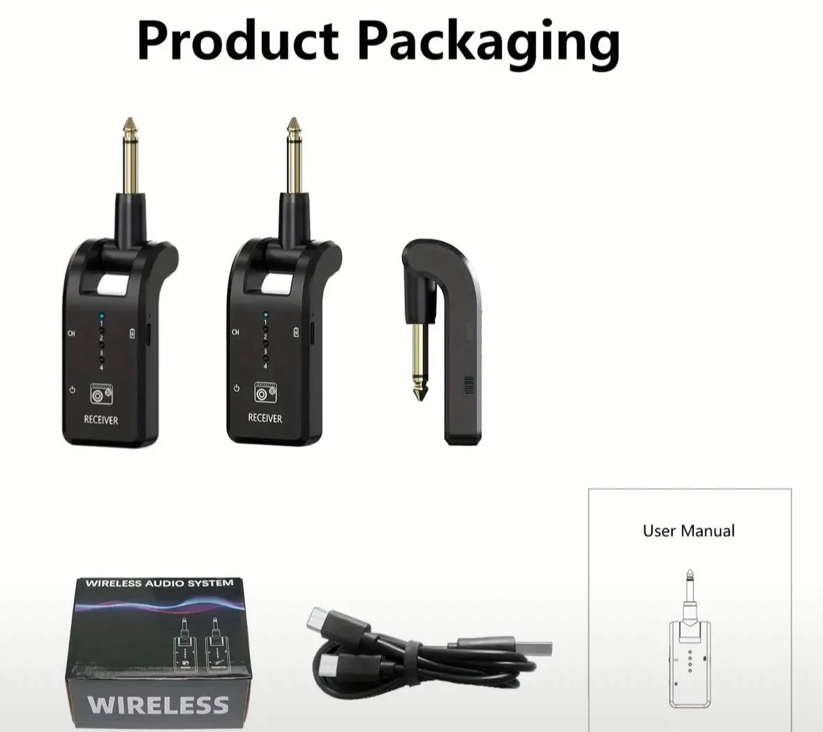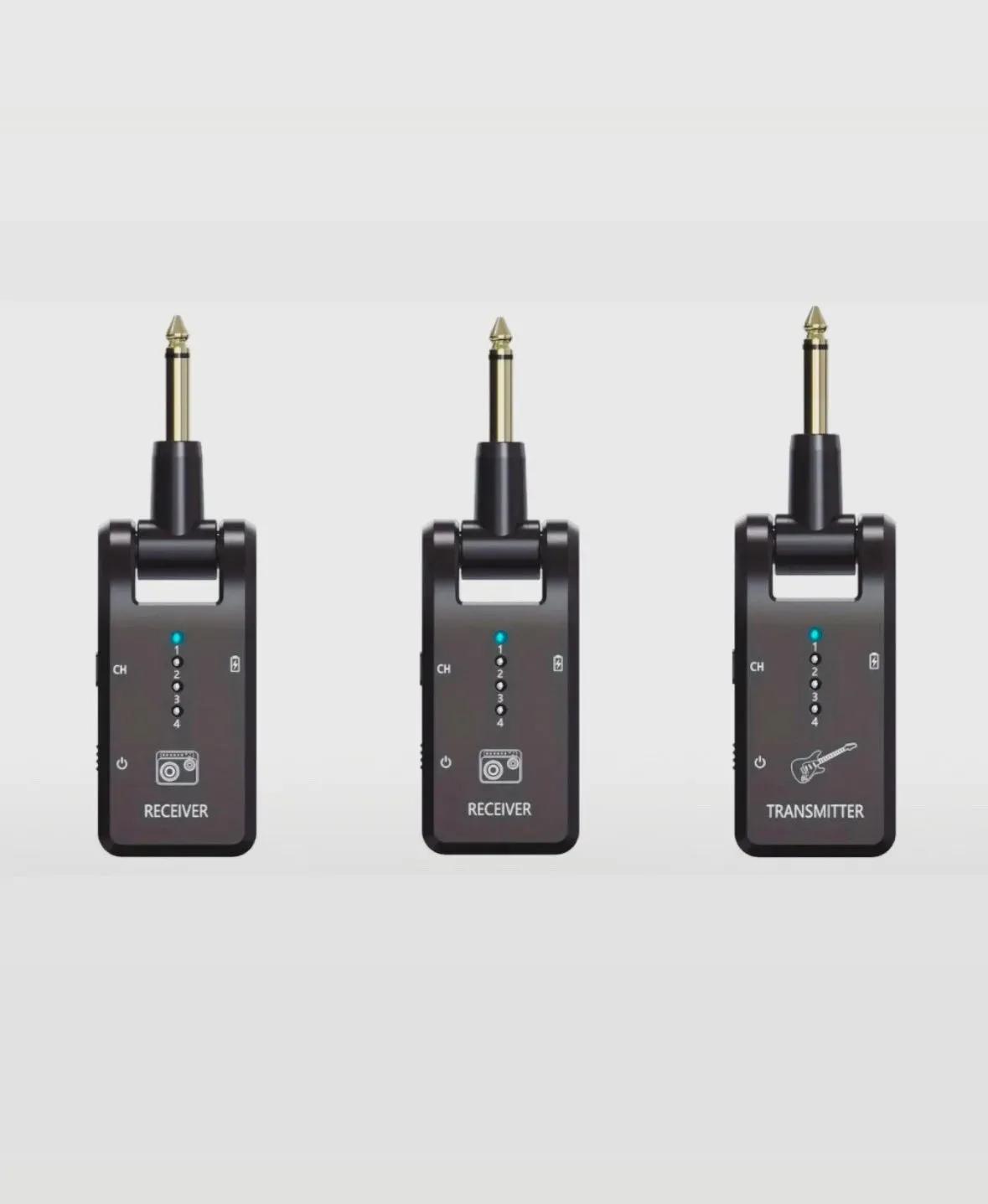 🎸【CARACTERISTICAS】Sistema inalámbrico UHF ( 2 transmisores + receptor) para instrumentos musicales como guitarra eléctrica, bajo, etc.