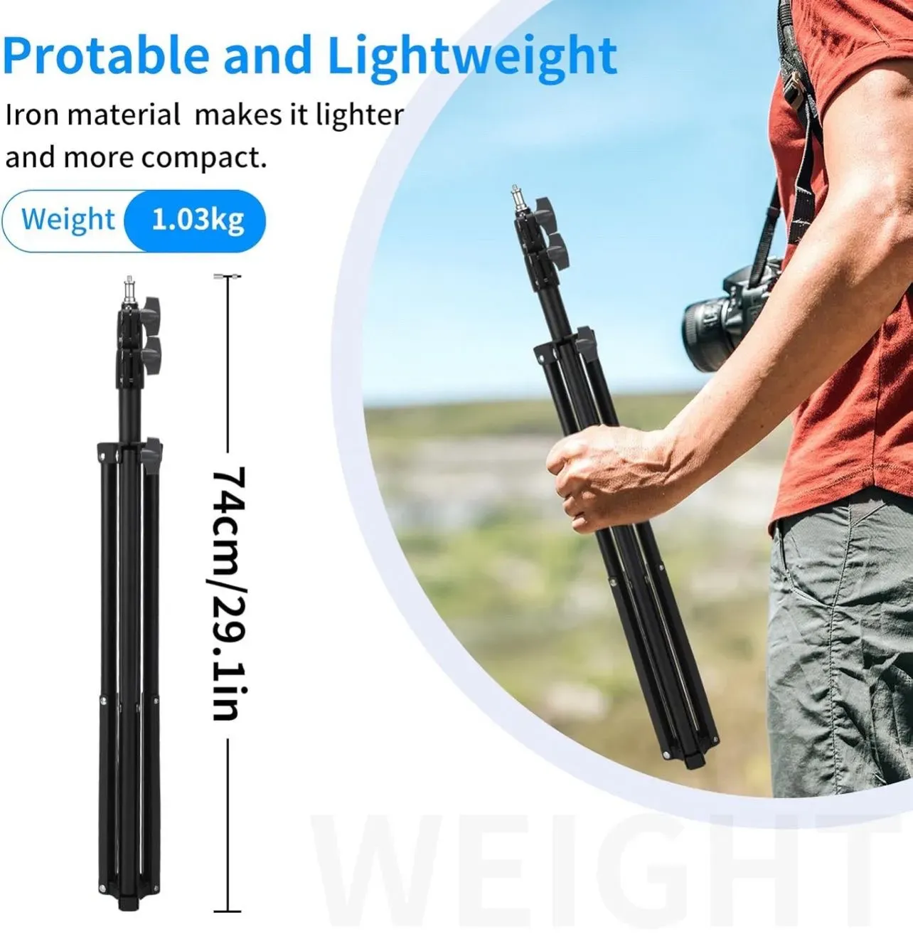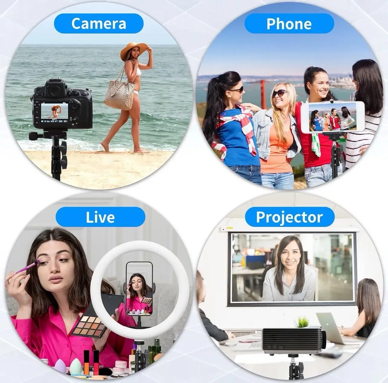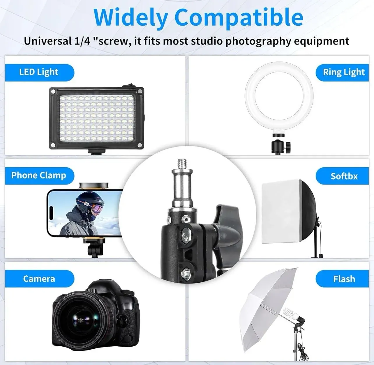- Versatilidad: diseñado para adaptarse a cámaras DSLR, luces LED, anillos de luz, softboxes, flashes y más, proporcionando una plataforma segura y estable para tu equipo de fotografía.